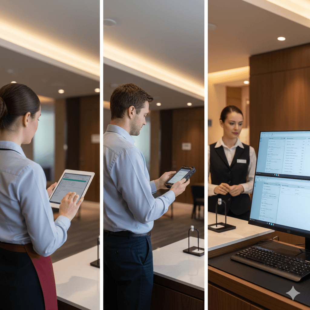 Housekeeping, technical, and F&B teams can log tasks, report issues, and share photos/videos directly from their phones.